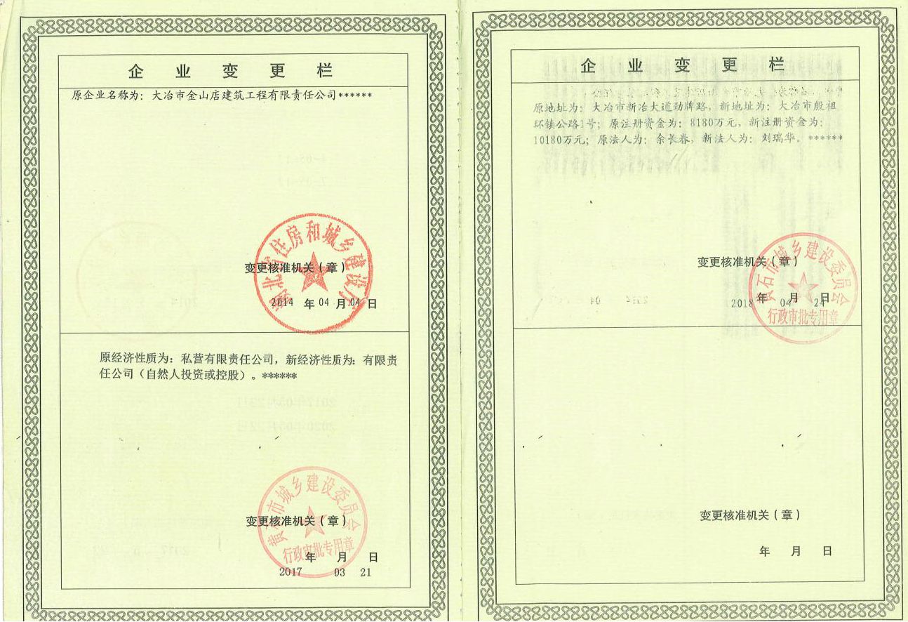大冶金山建筑工程有限公司始建于1984年,屬鎮辦集體企業。1997年改制為大冶山建筑工程有限責任公司,屬股份制企業。2013年更名為大冶金山建筑工程有限公司,2018年3月公司資源重組,公司注冊資金達到10180.00萬元,公司法定代表人為劉瑞華。公司具有古建筑工程專業承包壹級、建筑工程施工總承包貳級、市政工程總承包叁級、鋼結構工程專業承包叁級資質。